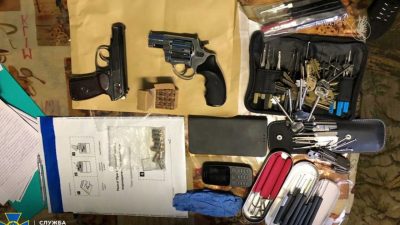 ДетальнішеРучний кулемет та іноземні гвинтівки з глушниками, пістолет, револьвер, набої різного калібру, а також понад 400 одиниць спеціальних відмичок для при