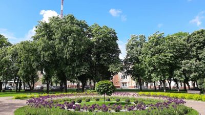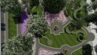 ДетальнішеОкругла зелена огорожа з декоративних кущів, круглі лавки з кущами гібіскусу, скульптура визначної чернігівської особистості, лайтбокси, ігрова зона