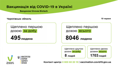 ДетальнішеЗа минулу добу в Чернігівській області вакциновано 743 особи, з них: - CoronaVac – 503 особи: 495 перша доза + 8 друга доза (маломобільні групи, ї