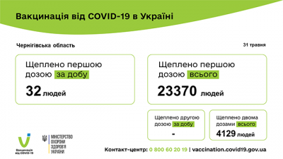 ДетальнішеЗа минулу добу в Чернігівській області від коронавірусу вакциновано 32 особи, з них: - CoronaVac – 32 особи першою дозою (маломобільні групи