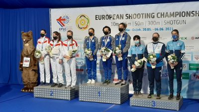 ДетальнішеНа чемпіонаті Європи, що проходить у хорватському місті Осієк, жіноча пістолетна команда у складі Олени Костевич, Поліни Колеснікової та Юлії Корости