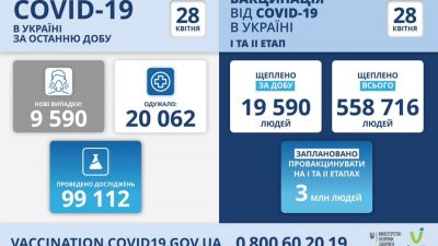 Детальніше9 590 нових випадків коронавірусної хвороби COVID-19 зафіксовано в Україні станом на 28 квітня 2021 року. Зокрема, захворіли 451 дитина та 217 медпр