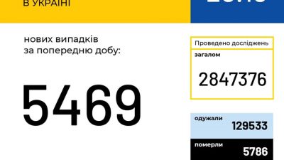 Станом на ранок 20 жовтня в Україні 309 107 лабораторно підтверджених випадків COVID-19, з них 5 786 летальні, 129 533 пацієнтів