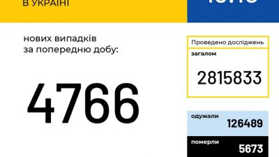 ДетальнішеСтаном на ранок 19 жовтня в Україні 303 638 лабораторно підтверджених випадків COVID-19, з них 5 673 летальні, 126 489 паціє
