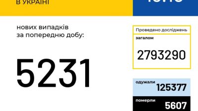 ДетальнішеСтаном на ранок 18 жовтня в Україні 298 872 лабораторно підтверджених випадки COVID-19, із них 5 607 летальних, 125 377 пацієнтів одужали. За д