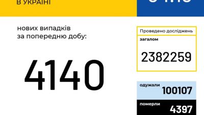 ДетальнішеСтаном на ранок 4 жовтня в Україні 226 462 лабораторно підтверджених випадків COVID-19, з них 4 397 летальні, 100 107 пацієнтів од