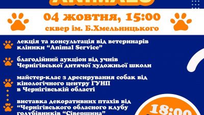 4 жовтня о 15:00 у сквері Богдана Хмельницького в Чернігові пройде камерний івент до Всесвітнього дня захисту тварин. Повідомляє на своїй сторінці