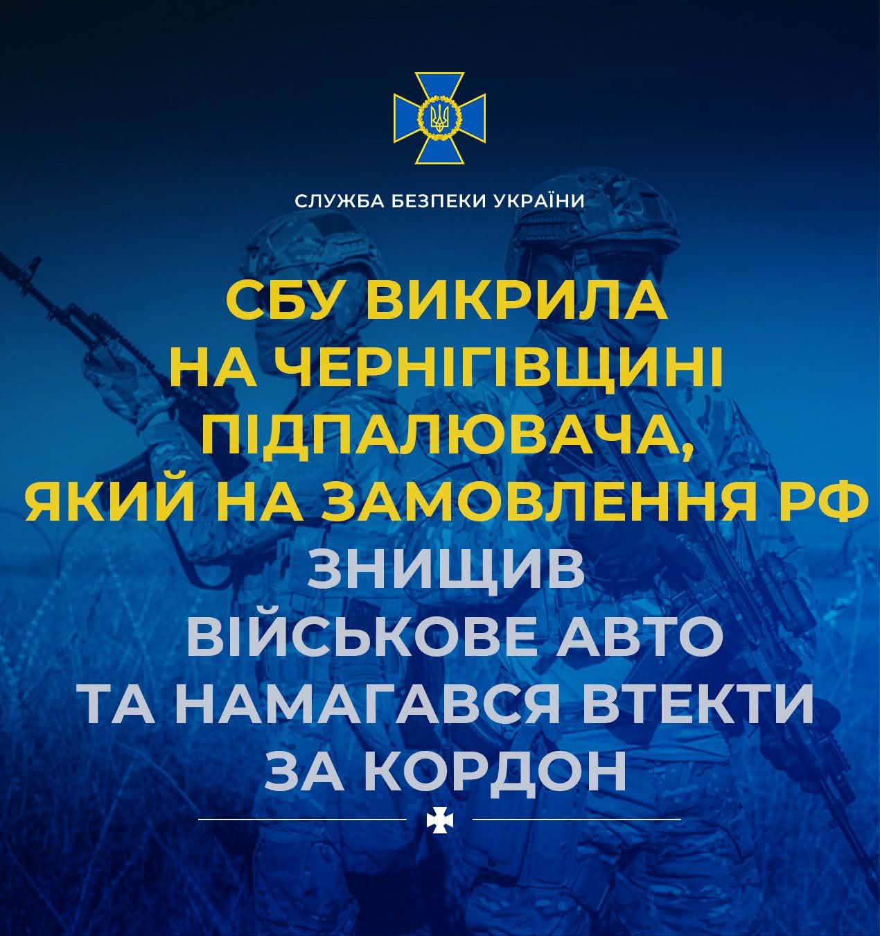 Контррозвідка Служба безпеки України викрила зловмисника, який за вказівкою куратора з російської федерації знищив військовий автомобіль, що використовувався для забезпечення підрозділів Сил оборони України, та намагався втекти за кордон.