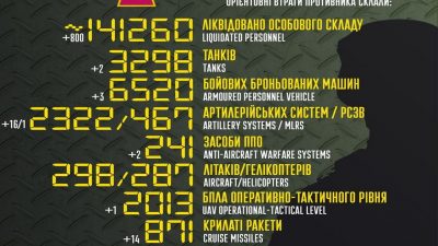 ДетальнішеМинулої доби, 16 лютого, українські воїни ліквідували щонайменше 800 російських окупантів. Про це йдеться у зведенні Генерального штабу ЗСУ. За