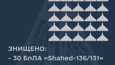 ДетальнішеУ ніч з 18 на 19 грудня Протиповітряна оборона збила 30 з 35 іранських дронів «Shahed-136/131», якими окупанти атакувати Україну. Загалом виявлено