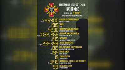ДетальнішеЗ початку повномасштабного вторгнення українські воїни знищили 45400 рашистів. Тільки за минулу добу ліквідували 200 окупантів. Про це повідомляє