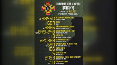 З початку повномасштабної війни війська рф втратили 38450 військовослужбовців. За минулу добу Збройні сили України ліквідували 150 окупантів. Про